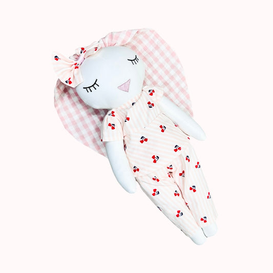Cherry Night Suit Set With Matching Bunny Doll