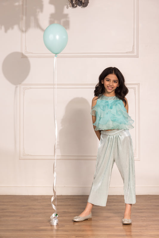 Organza Ruffled Top (Sea Blue)